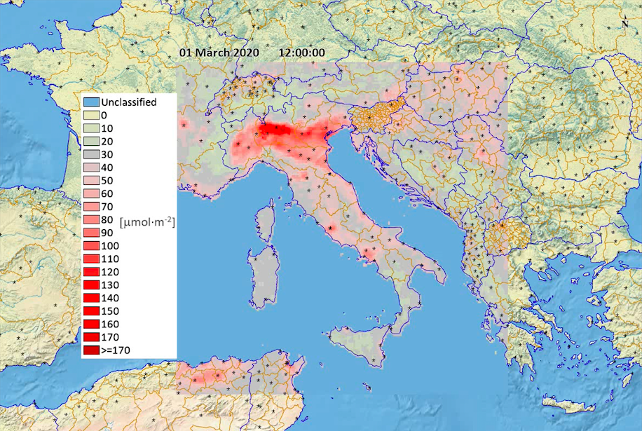 Researchers in our Earth Observation Department have started working on analyzing satellite data provided by the European Space Agency Sentinel-5P to produce daily maps that monitor NO2 (nitrogen dioxide) concentrations over time. NO2 is an irritant agent, one of the most toxic to humans, that is “largely produced by anthropogenic activities, such as the combustion of biomass and fossil fuels”, explains Elisabetta Fiori, one of the department’s researchers.