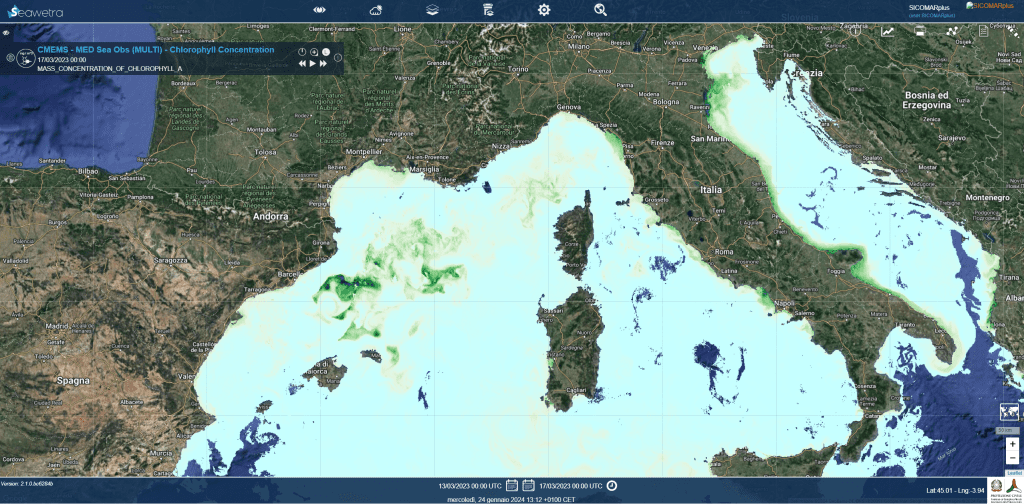 In the cover image: the chlorophyll concentration map for March 2023, displayed on the Seawetra platform